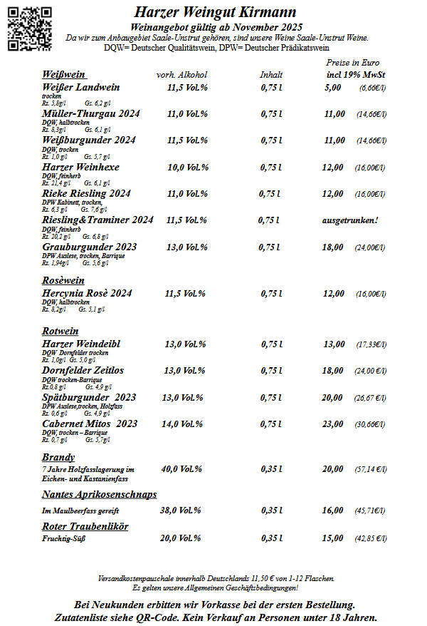 Falls Probleme beim Absenden des Formulares bei Ihnen auftreten sollten, senden Sie uns bitte eine Email an harzer-weingut@t-online.de mit Ihrer Bestellung. Vielen Dank!